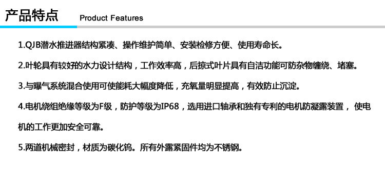 4、電機(jī)繞組絕緣等級F級,防護(hù)等級為IP68,選用優(yōu)質(zhì)軸承和電機(jī)防凝露裝置,使電機(jī)的工作更安全;