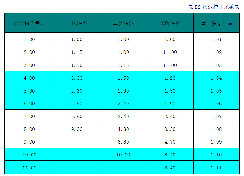1、根據(jù)圖B1或表B1確定待攪拌介質(zhì)的污泥校正系數(shù)。