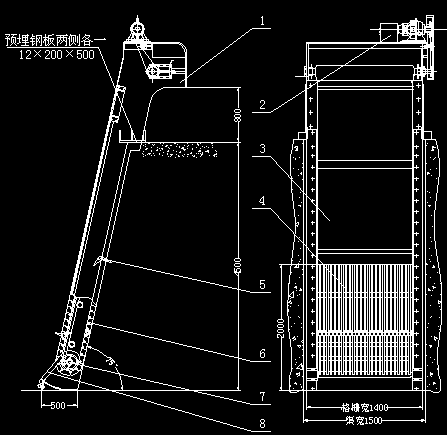 擋渣部分采用固定柵條形式,有較強(qiáng)的耐沖擊力,能承受較大的水位差。